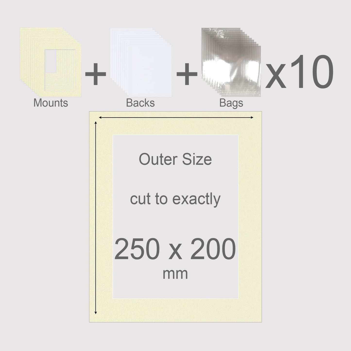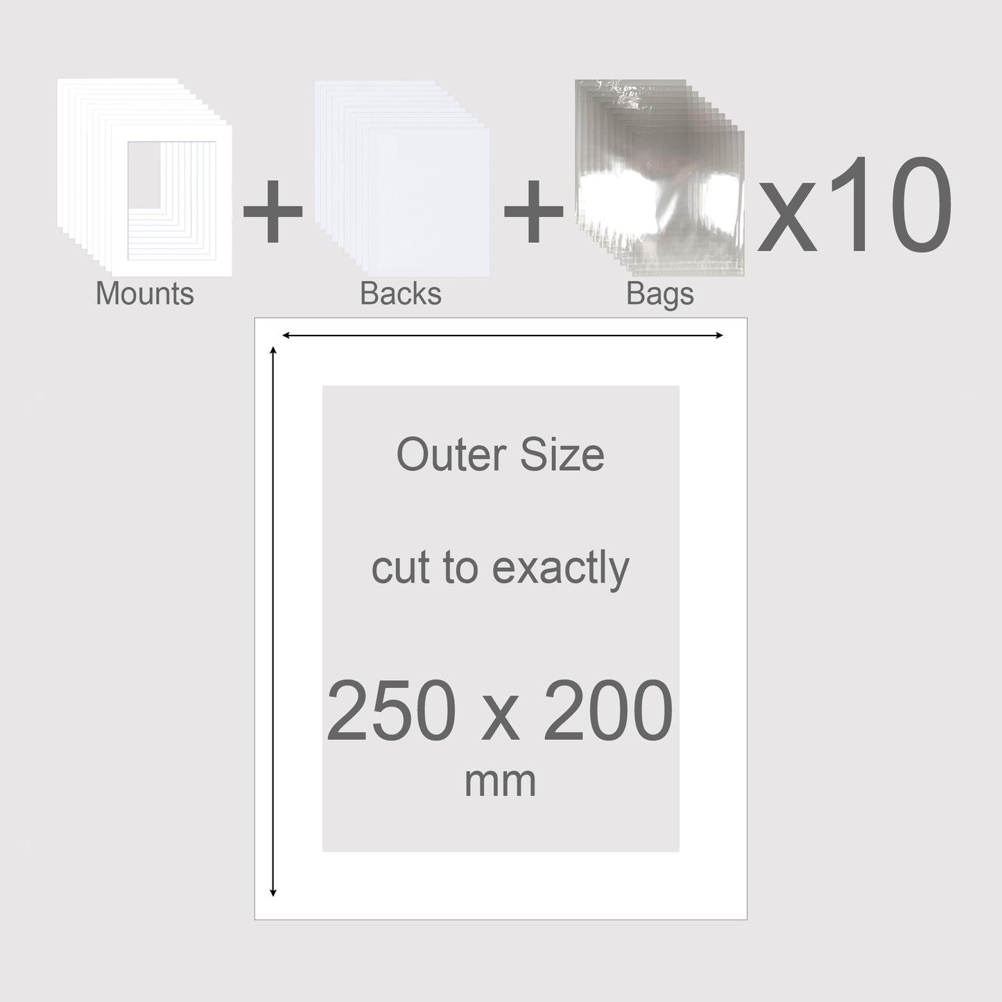 250 x 200 mm, Mounts, Backs, & Bags, Pack of 10