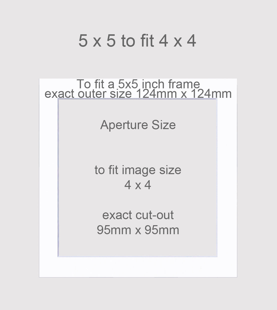Outer Size to fit a 5 x 5 inch frame - exact outer size 124mm x 124mm