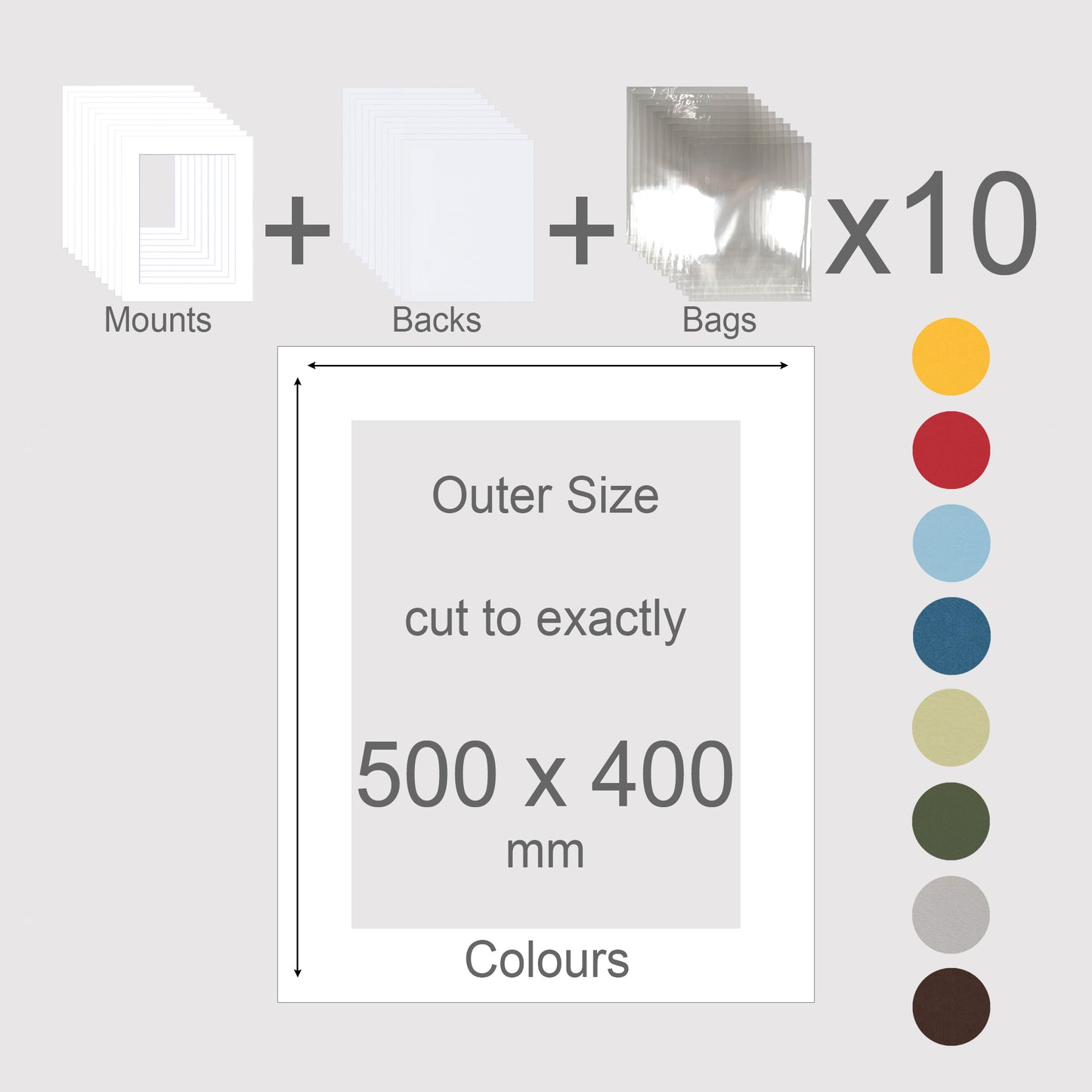 500 x 400 mm (Colours), Mounts, Backs, & Bags, Pack of 10