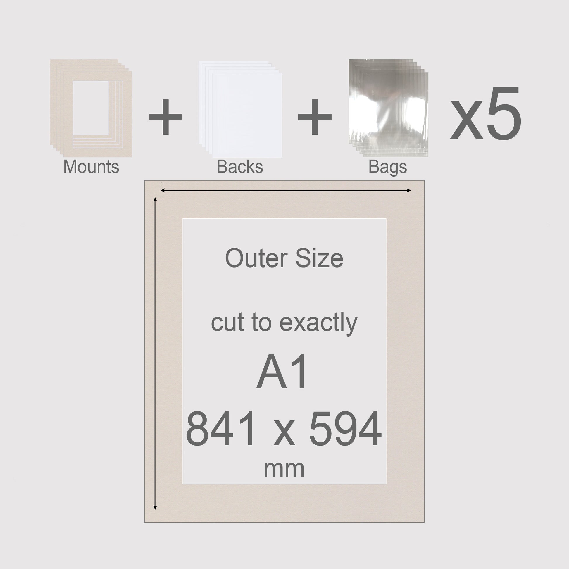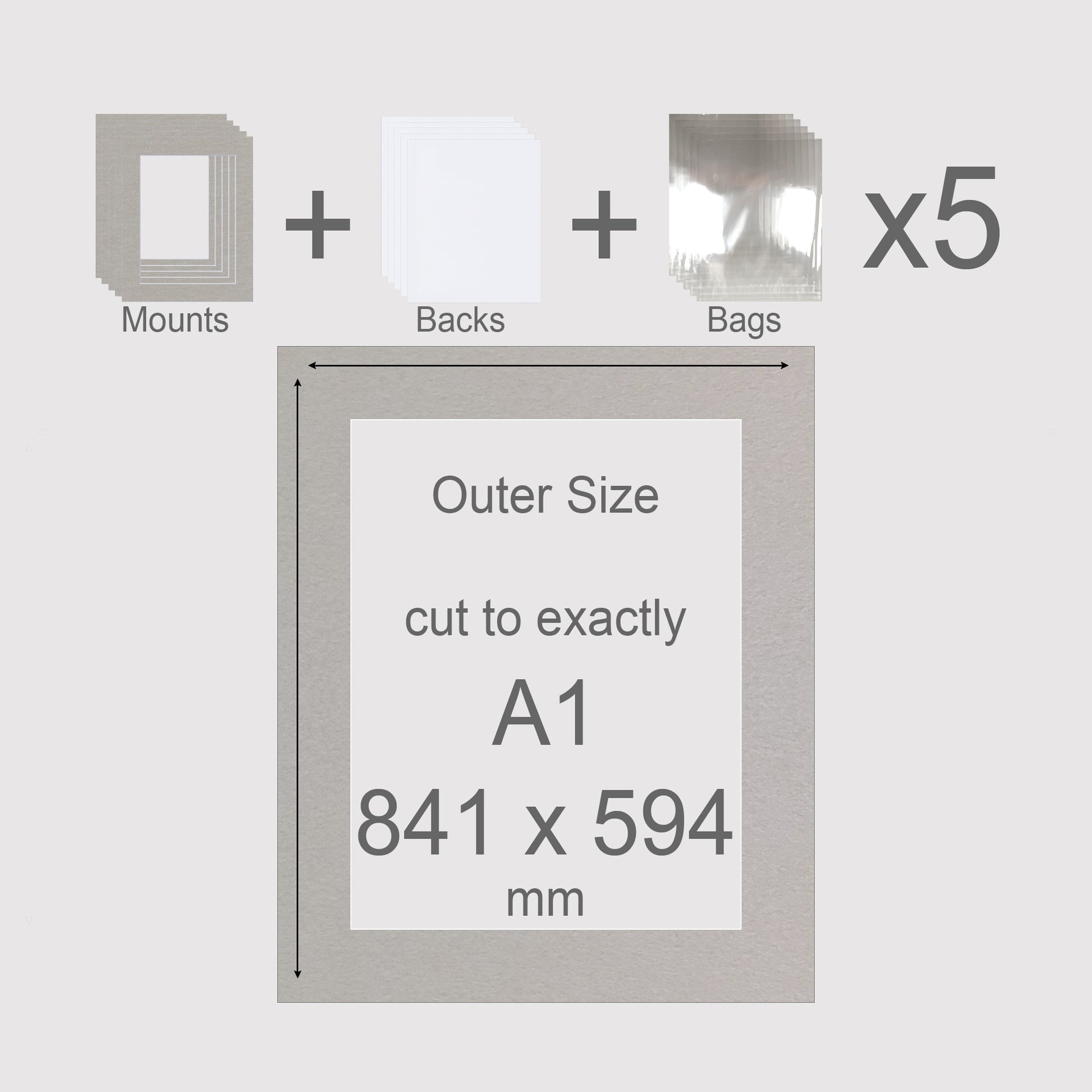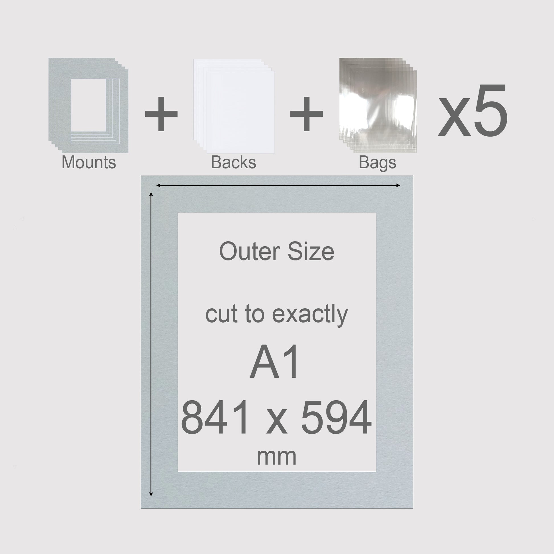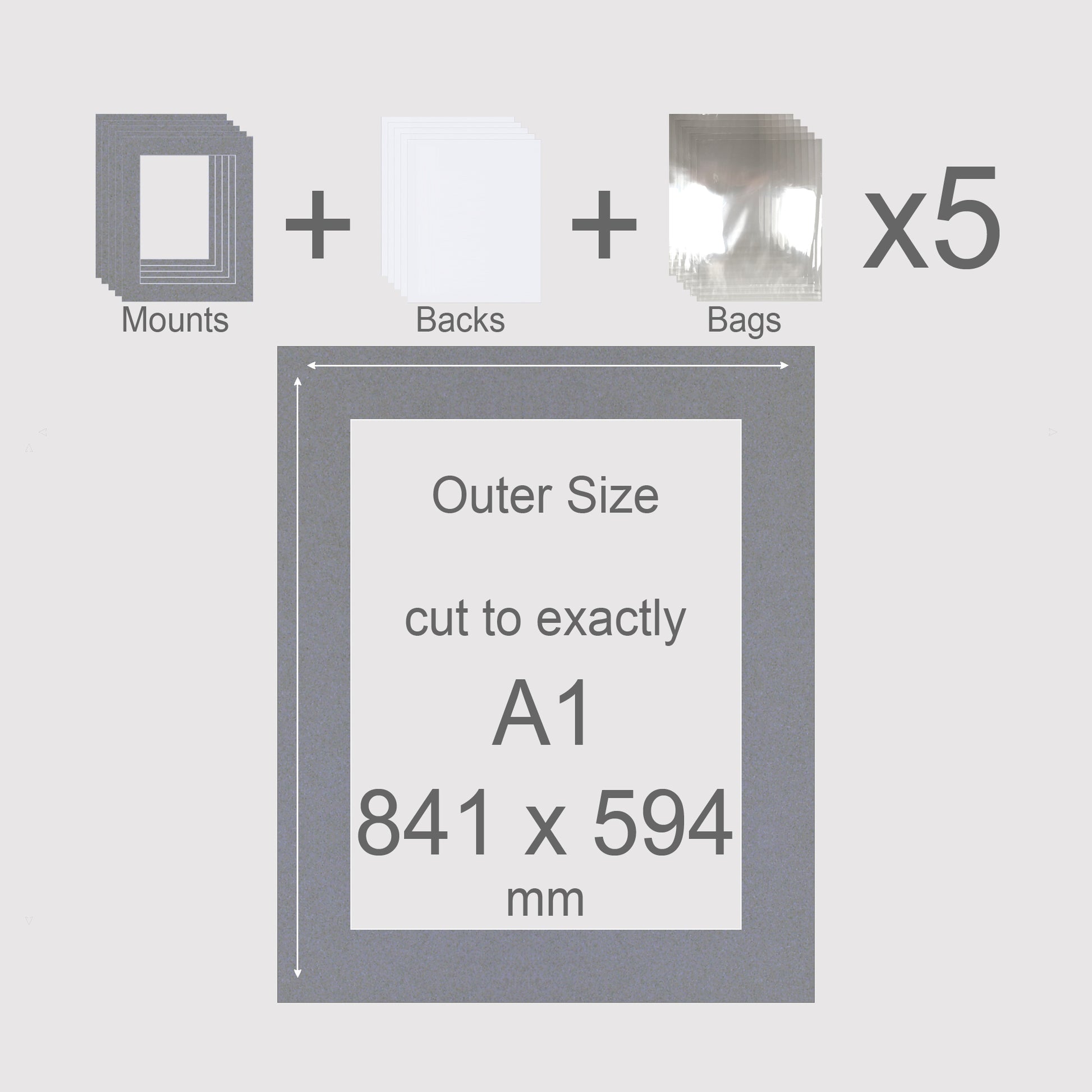 A1, 841 x 594 mm, Mounts, Backs, & Bags, Pack of 5