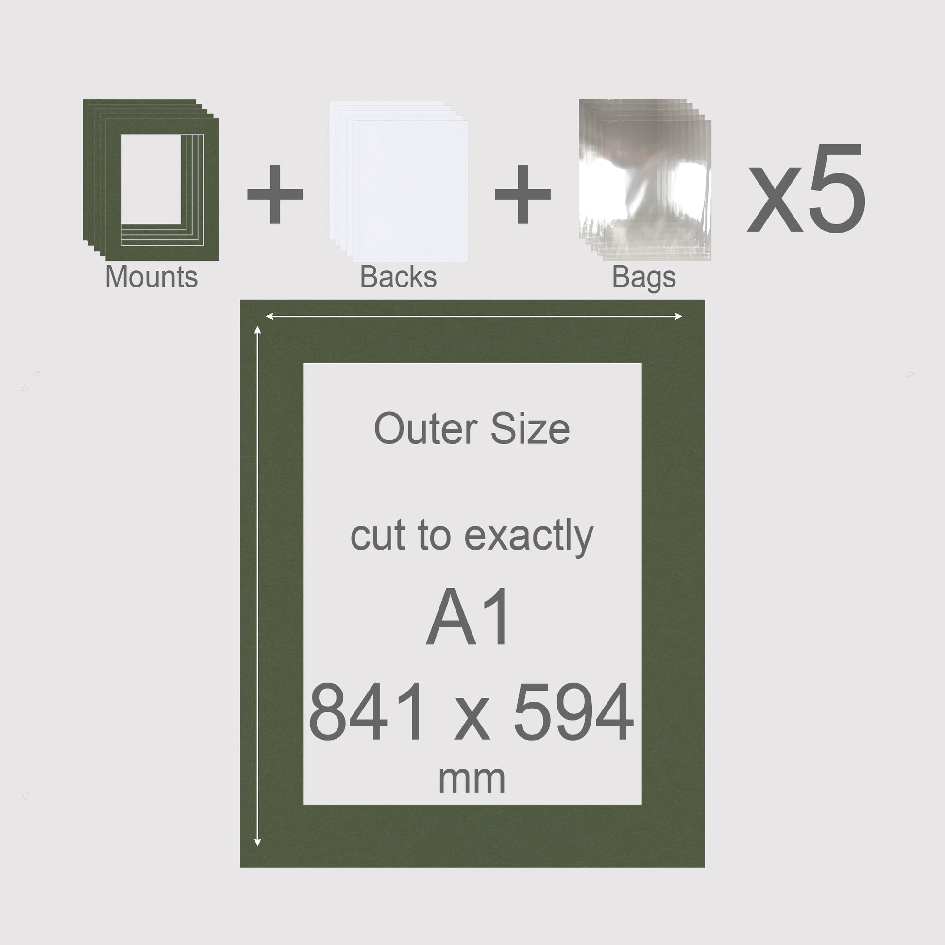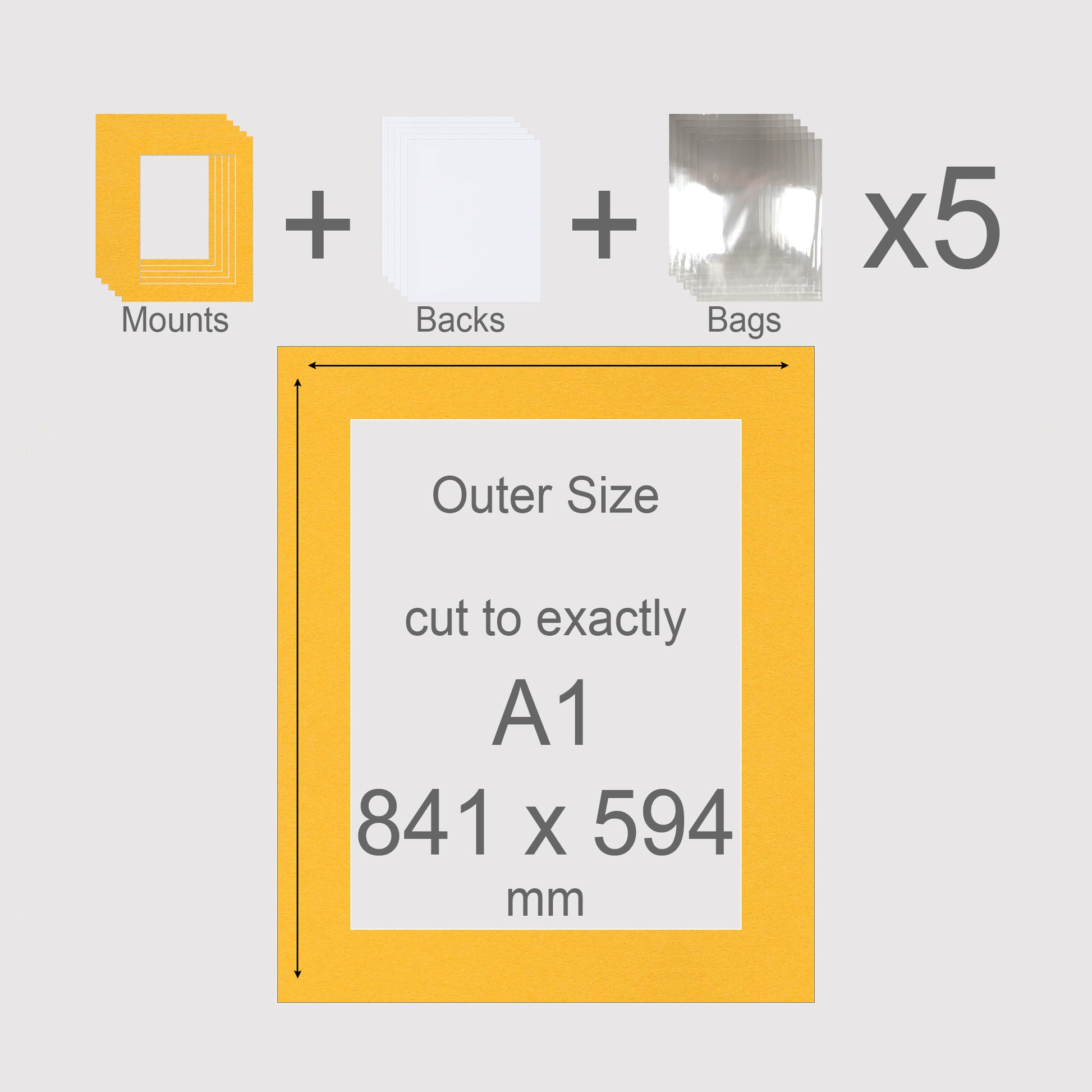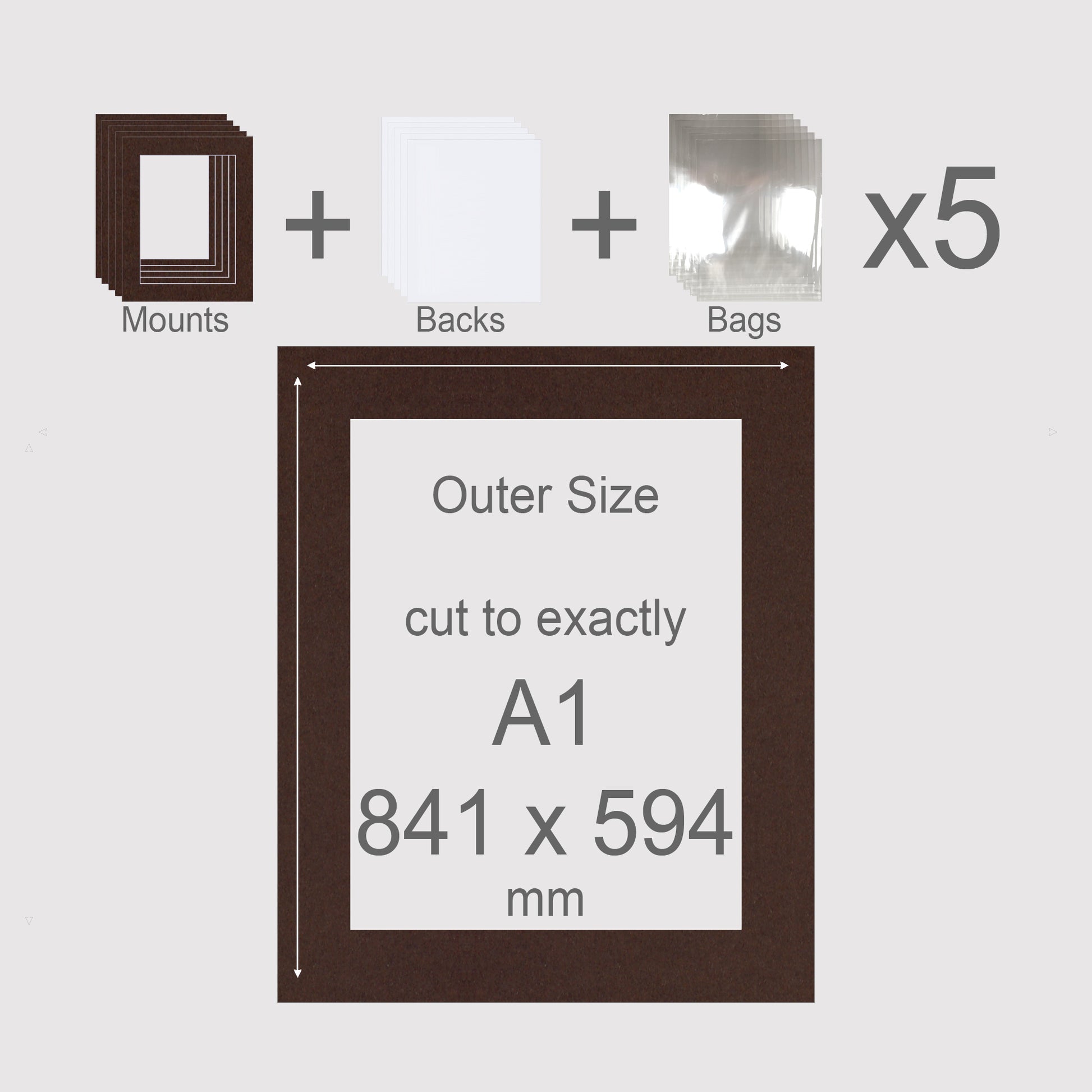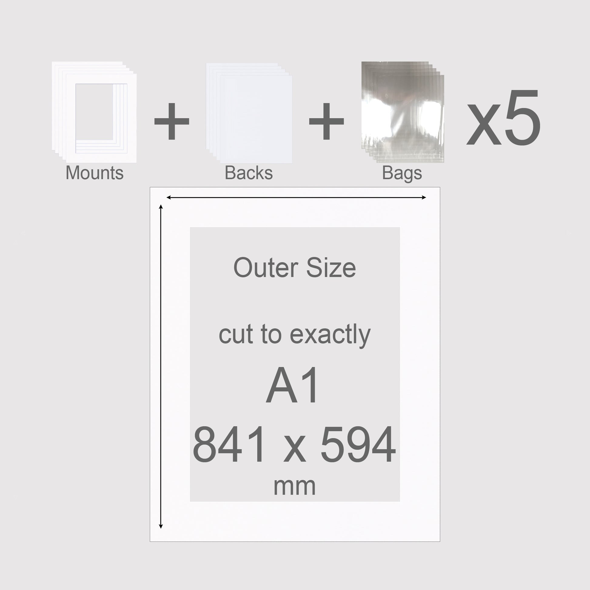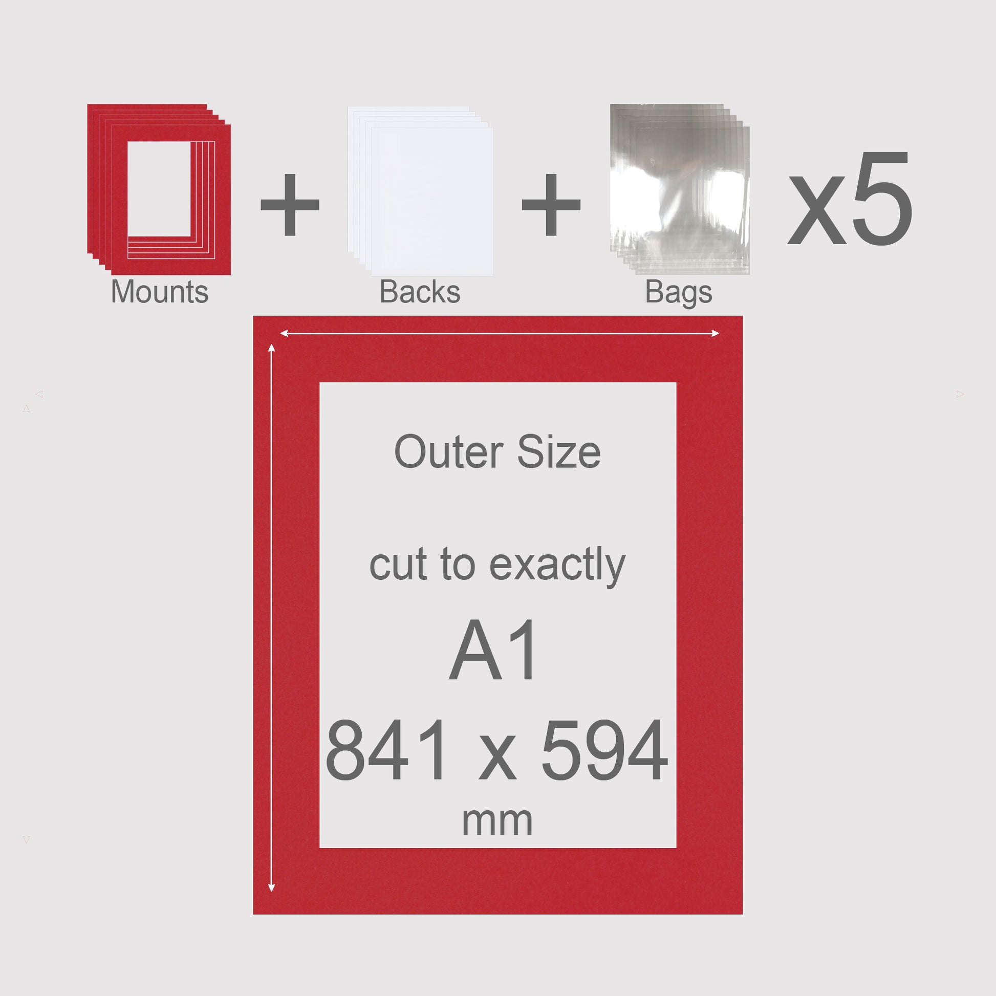 A1, 841 x 594 mm, Mounts, Backs, & Bags, Pack of 5