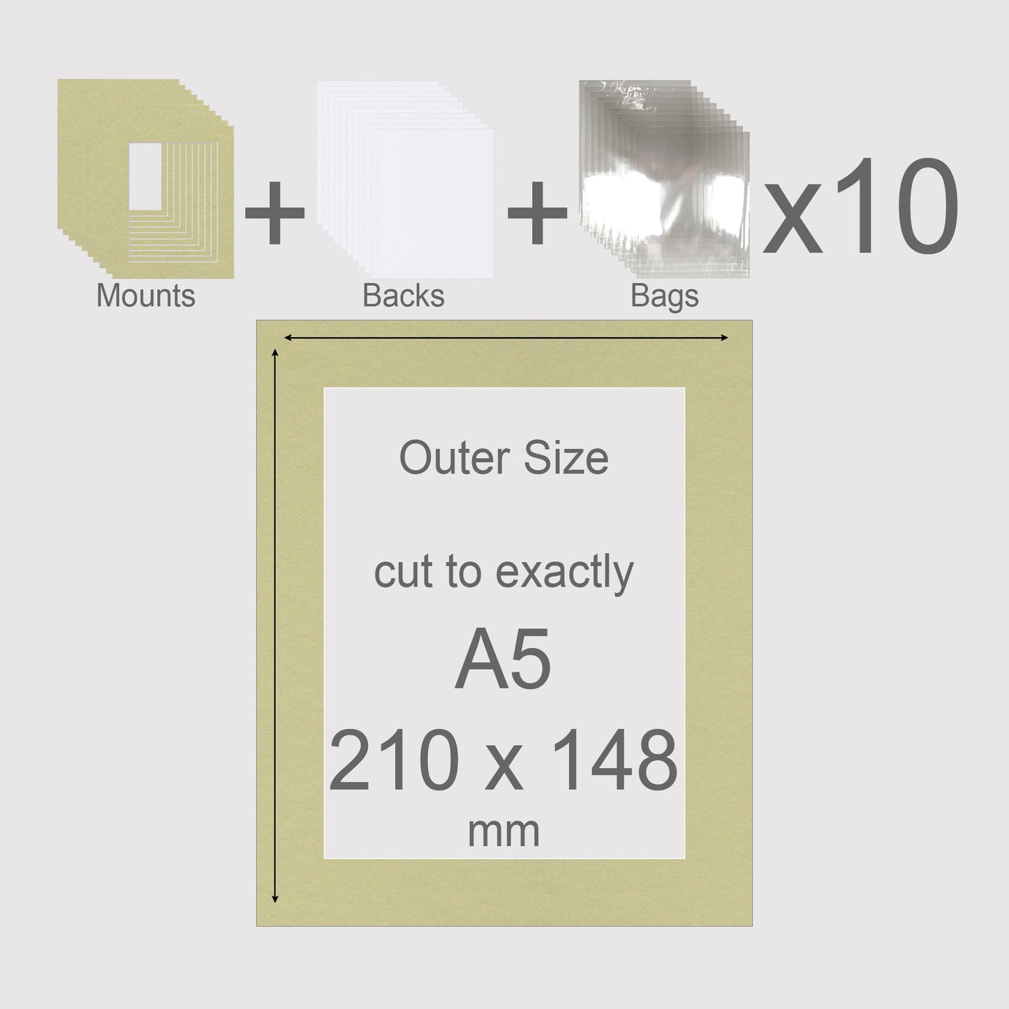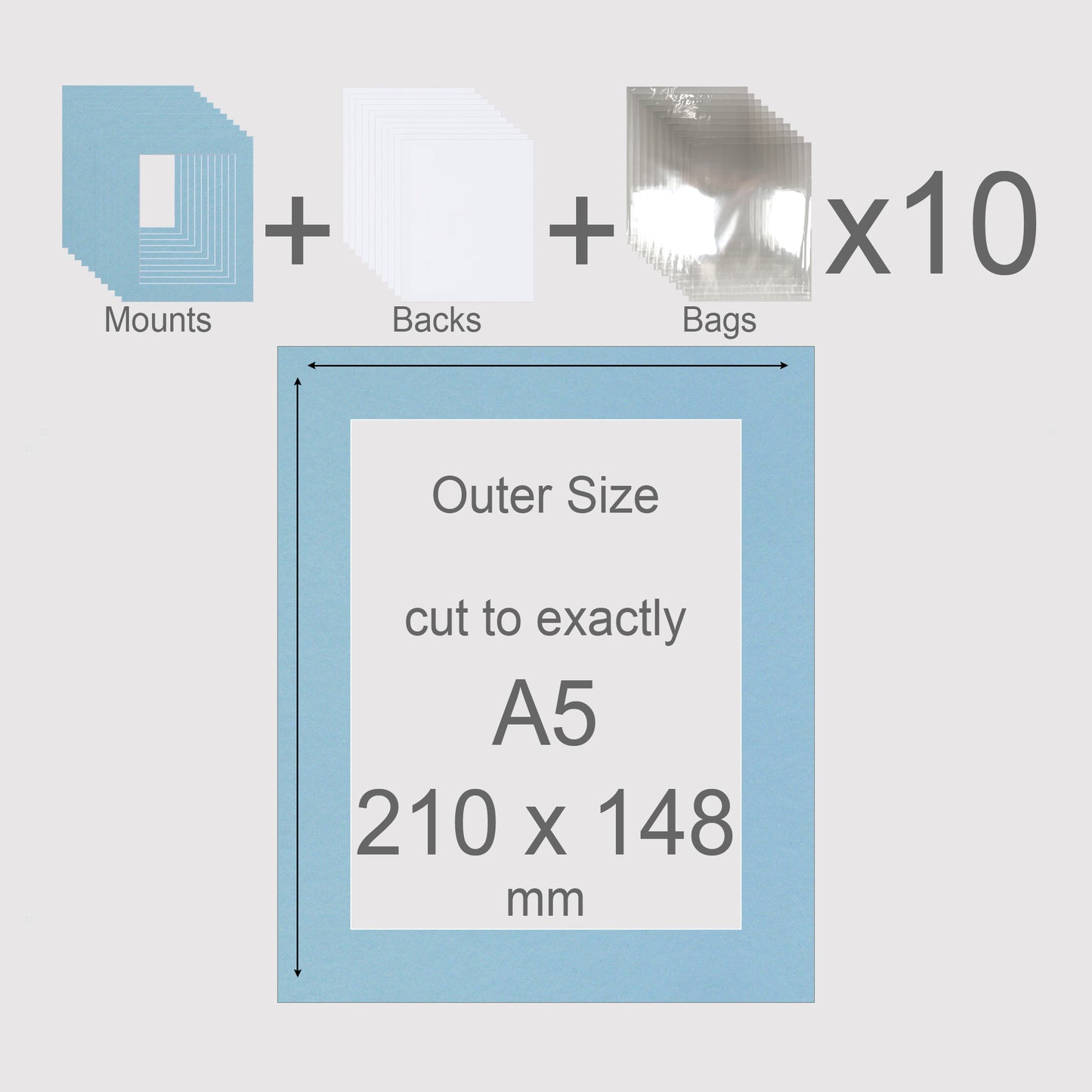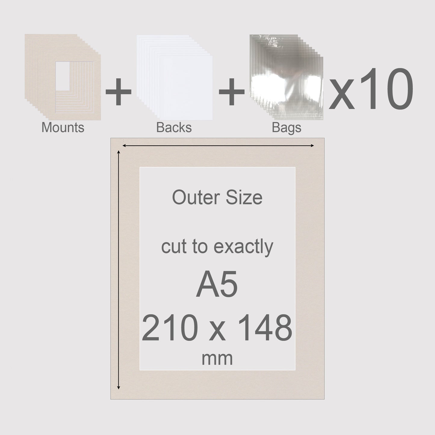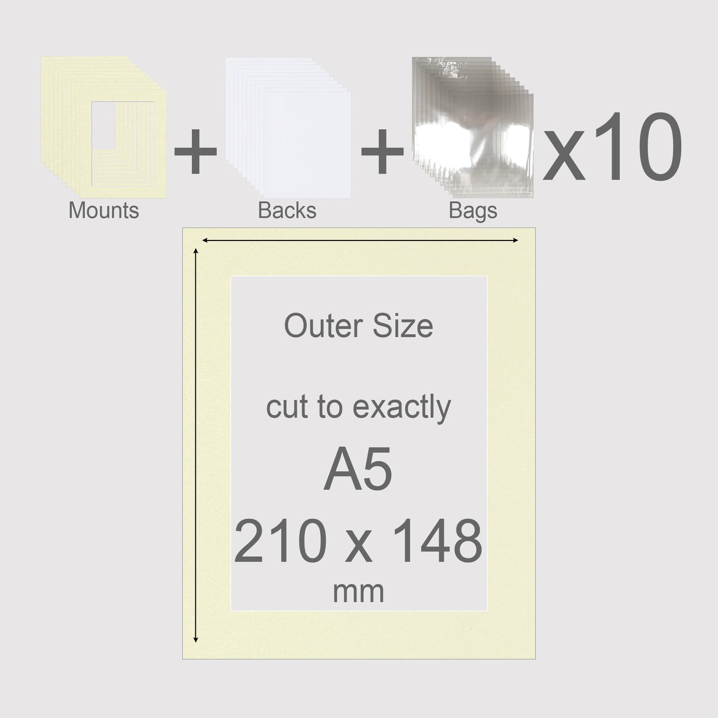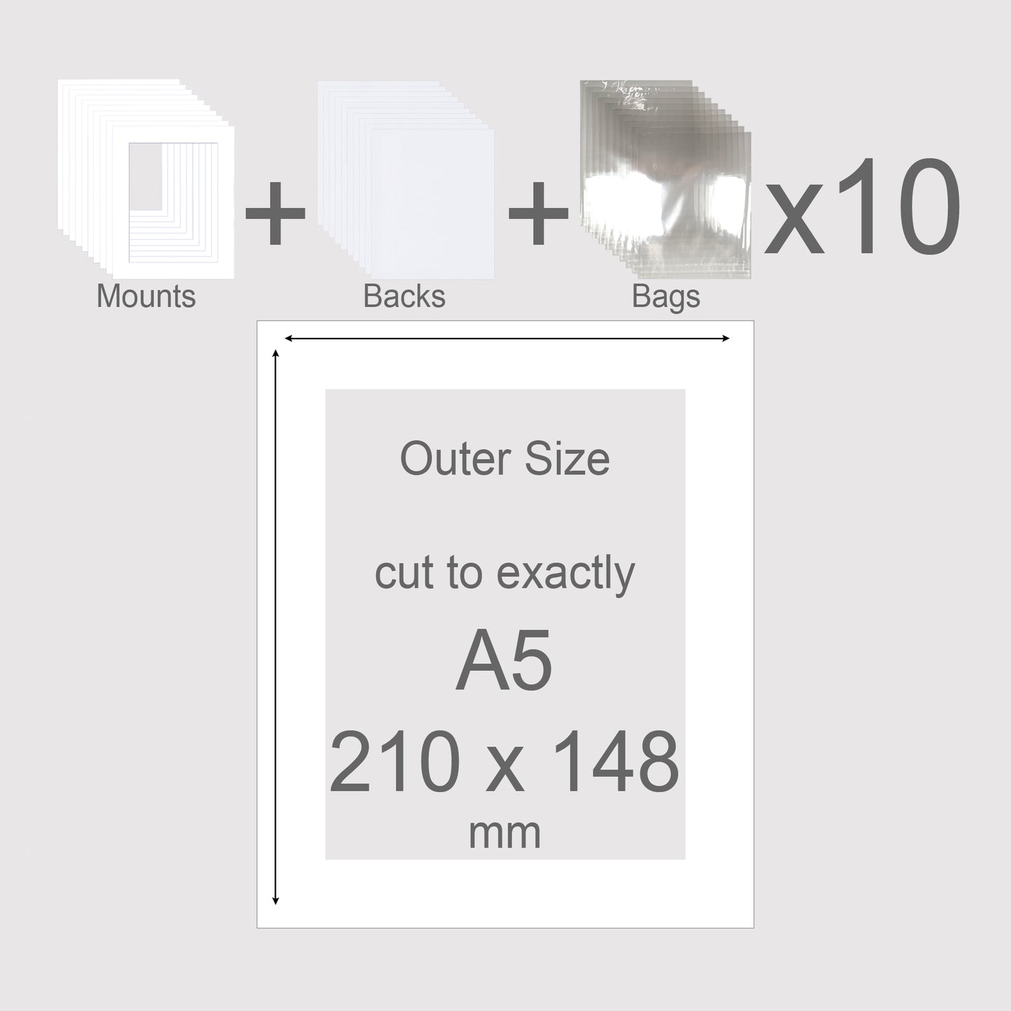 A5, 210 x 148 mm, Mounts, Backs, & Bags, Pack of 10